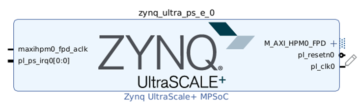 You should now see the block below. Click and drag from pl_clk0 to make a connection to maxihpm0_fpg_aclk.