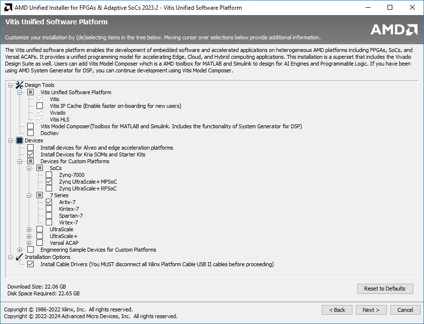 Artix-7 should be selected if you plan to play with other cheaper FPGAs in the future; else, uncheck it.